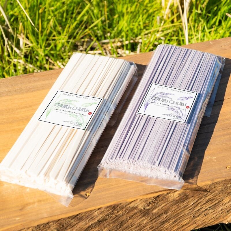農薬や化学肥料を使わずに育てたガヤマファームの古代米の米粉をブレンドした米粉麺です。古代米の香りと、米粉のもっちりとした食感がたまらなく美味しく、リピーターも多い商品です。